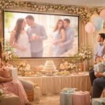 Baby shower de votre bébé : diaporama de souvenirs sur écran de projection